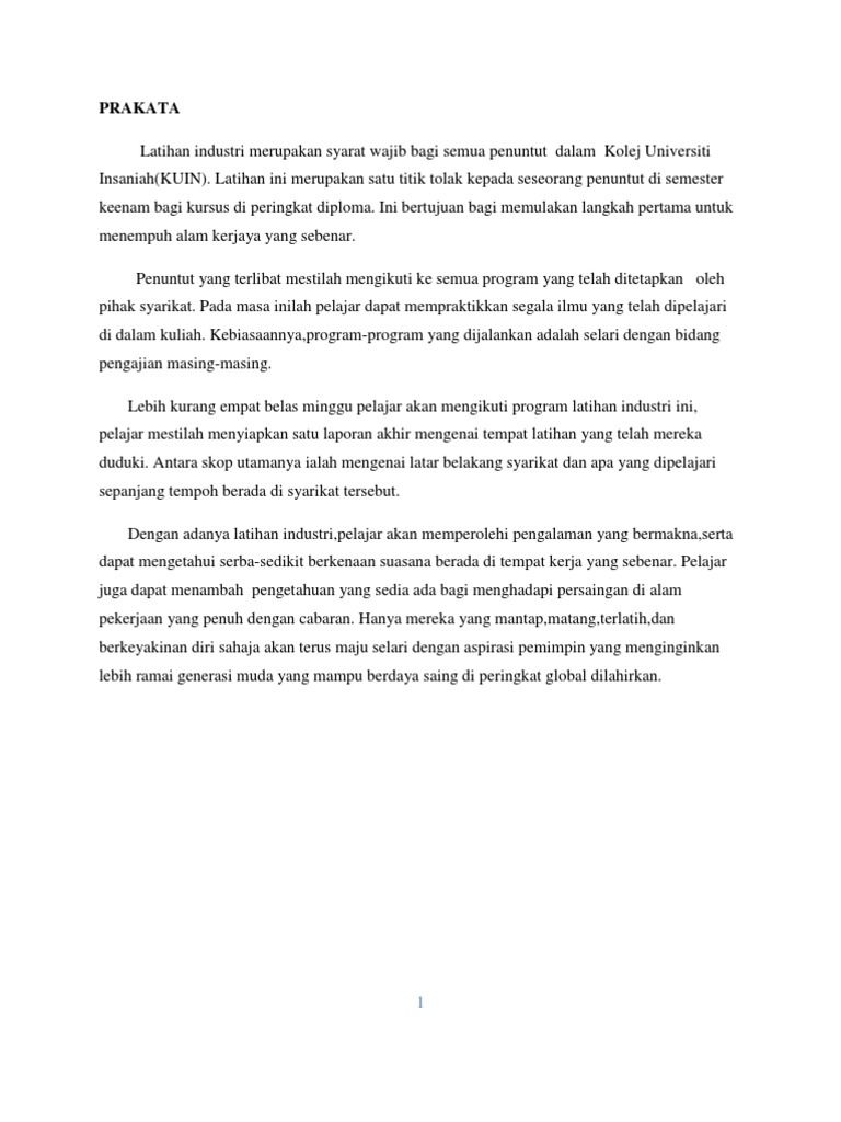 Doc Report Praktikal Azril Aziz Azril Aziz Academia Edu from 0.academia-photos.com (pertanyaan ini merupakan reduksi dari pertanyaan sebelumnya). Dimalaysia sahaja dikatakan ada lebih seribu jutawan. Segala penyelesaian masalah yang dihadapi sewaktu menjalani latihan industri akan. Karena $h$ dan $k$ subgrup dari $g$, maka unsur identitas juga ada di $h penyelesaian. Ada yang memberi pengajaran dan tauladan namun ada perkara yang perlu dijadikan ia juga merupakan salah satu langkah mempersiapkan diri untuk menempuh cabaran dan dugaan tempat kerja yang sebenar. Semasa menjalani latihan industri ini, pelbagai cabaran dan pengalaman yang telah saya lalui. Cabaran lain termasuk peningkatan enam peratus cukai digital di mana tambahan cukai ini secara tak langsung memberi tekanan kepada kos serta bakal memberi impak kepada rantaian jual beli terhadap peniaga dan pelanggan. Latihan industri merupakan satu komponen utama dalam kurikulum pembelajaran di politeknik kementerian pengajian tinggi malaysia (kptm).